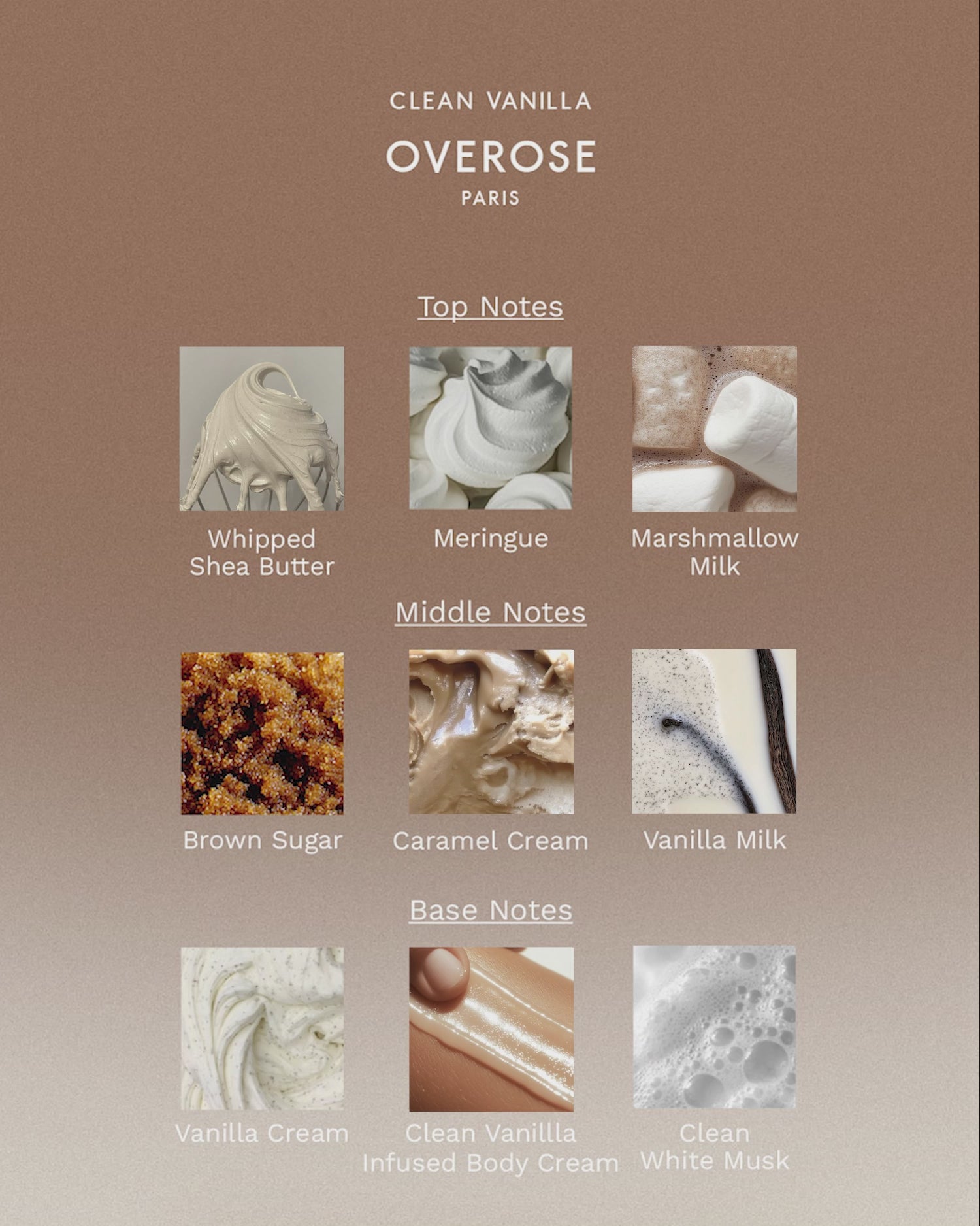 Clean Vanilla was born from the idea of blending pure vanilla extract into the richest, most nourishing body cream and capturing that sensation in a fragrance. It’s a gourmand made ethereal: soft, milky, cocooning, and spa-like.