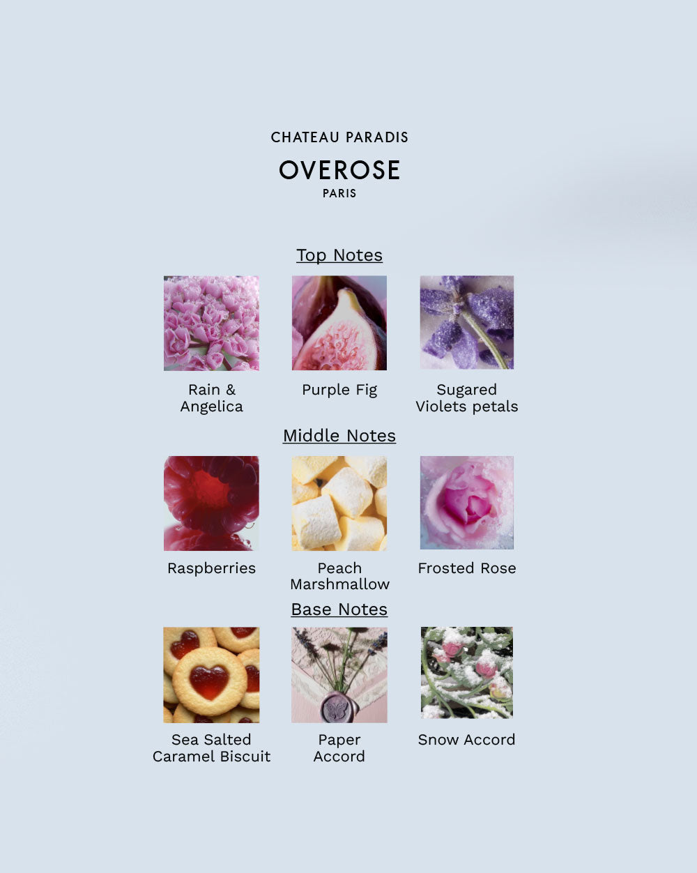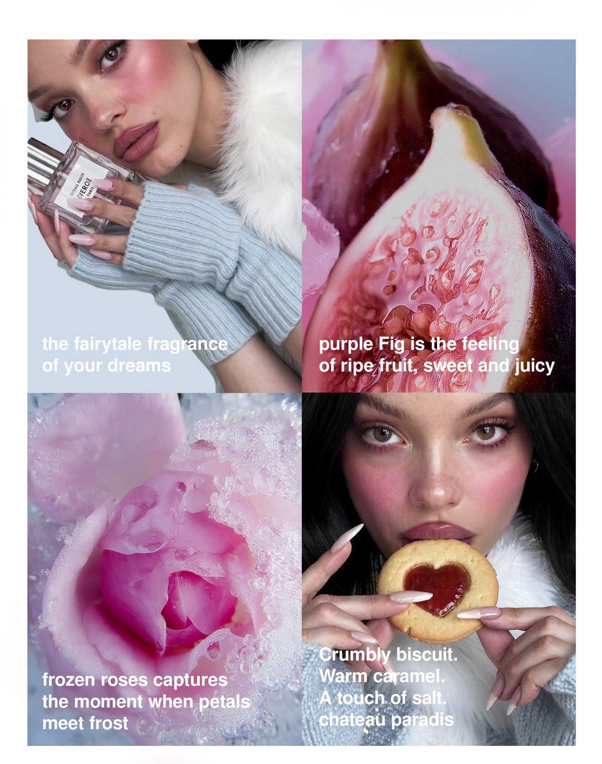 Rain & Angelica, Purple Fig, Sugared Violet Petals, cool, crystalline, a shimmering opening that feels like stepping into cold air outside a grand château. Fresh, bright, a little enchanting.