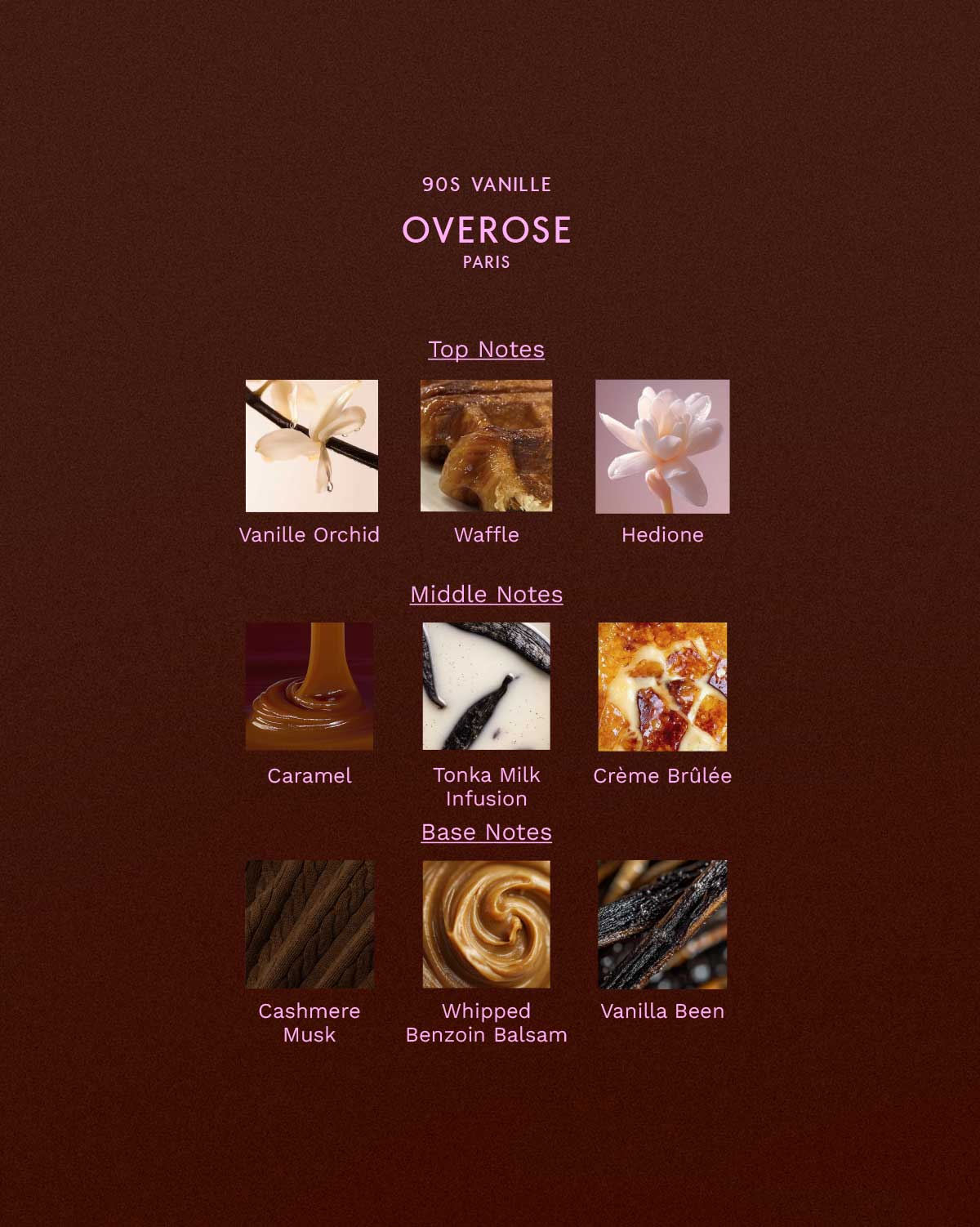 We enriched natural vanilla extract with notes of caramel and a warm milk infusion, creating the sensation of crème brûlée melting on skin. At the base, cashmere musk and whipped benzoin balsam wrap the composition in softness and depth, adding richness without weight. A fragrance that’s indulgent, intimate, and effortlessly iconic. Like the 90s itself.