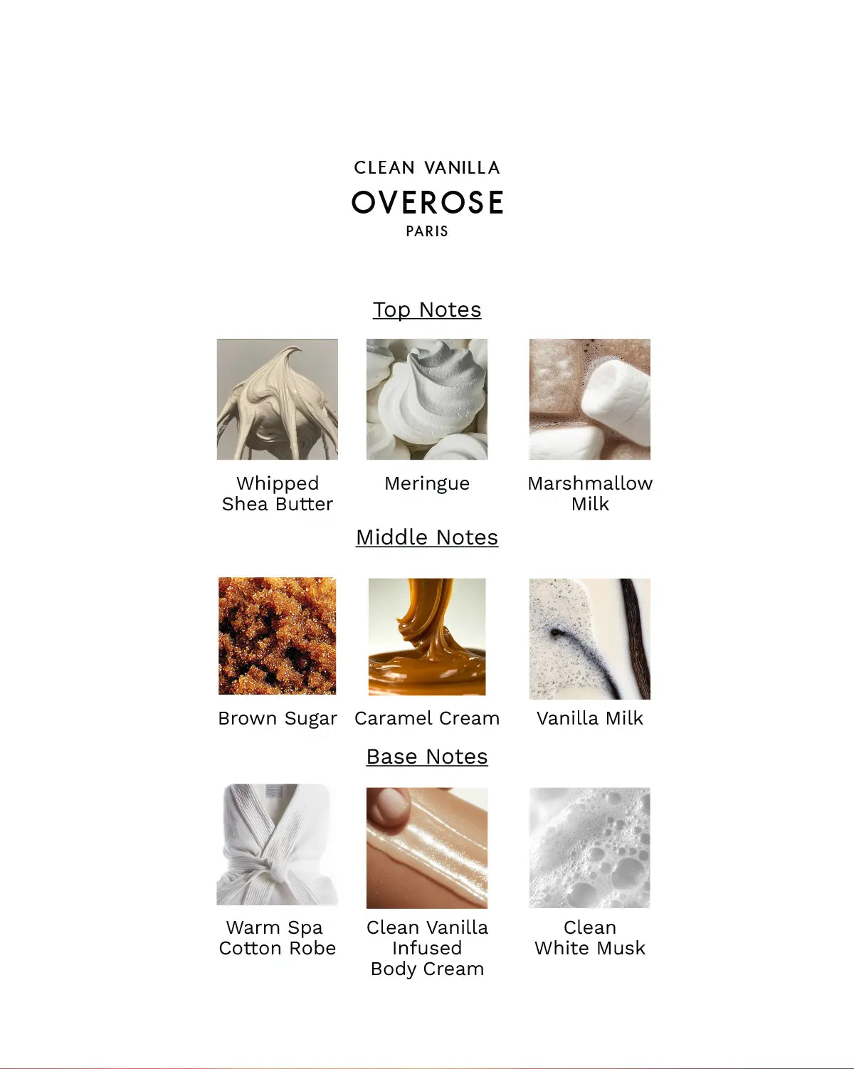 Clean Vanilla was born from the idea of blending pure vanilla extract into the richest, most nourishing body cream and capturing that sensation in a fragrance. It’s a gourmand made ethereal: soft, milky, cocooning, and spa-like.