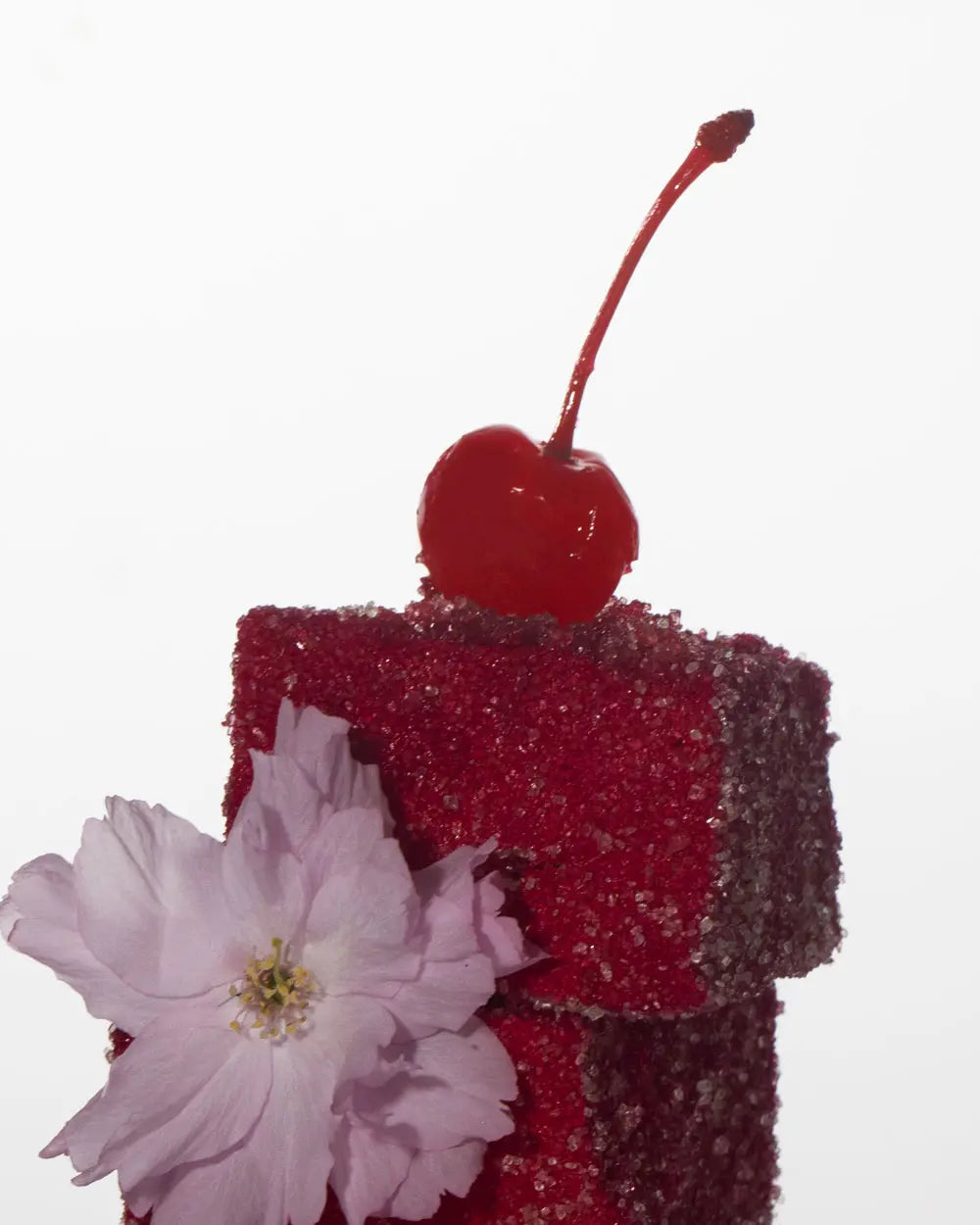 In the base, sugar and marshmallow accords settle softly with subtle vanilla extract. A composition of contrasts: cheerful cherry brightness, airy floral lift, and cozy, resinous warmth, sweet without weight, luminous yet grounded.